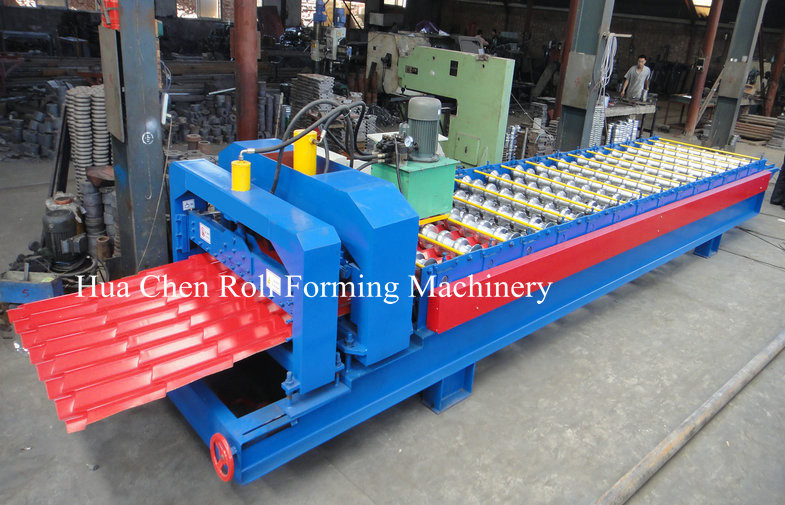 Unsere Stahlfliesen-Rolle, die Maschine bildet, kann verschiedenes vom Stahldach produzieren und Wand, ist es Materialien eines Neubaus, die Produkte ist weit verbreitet als das Dach und die Wand der Fabrik, des Lagers, der Garage, der Turnhalle, der Ausstellungsmitte, des Kinos, des Theaters, des etc. Es hat viele Vorteile, wie einfache Installation, kurzer Gebäudezeitraum, Schönheit, Leichtgewichtler aber hochfestes.
